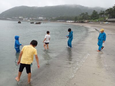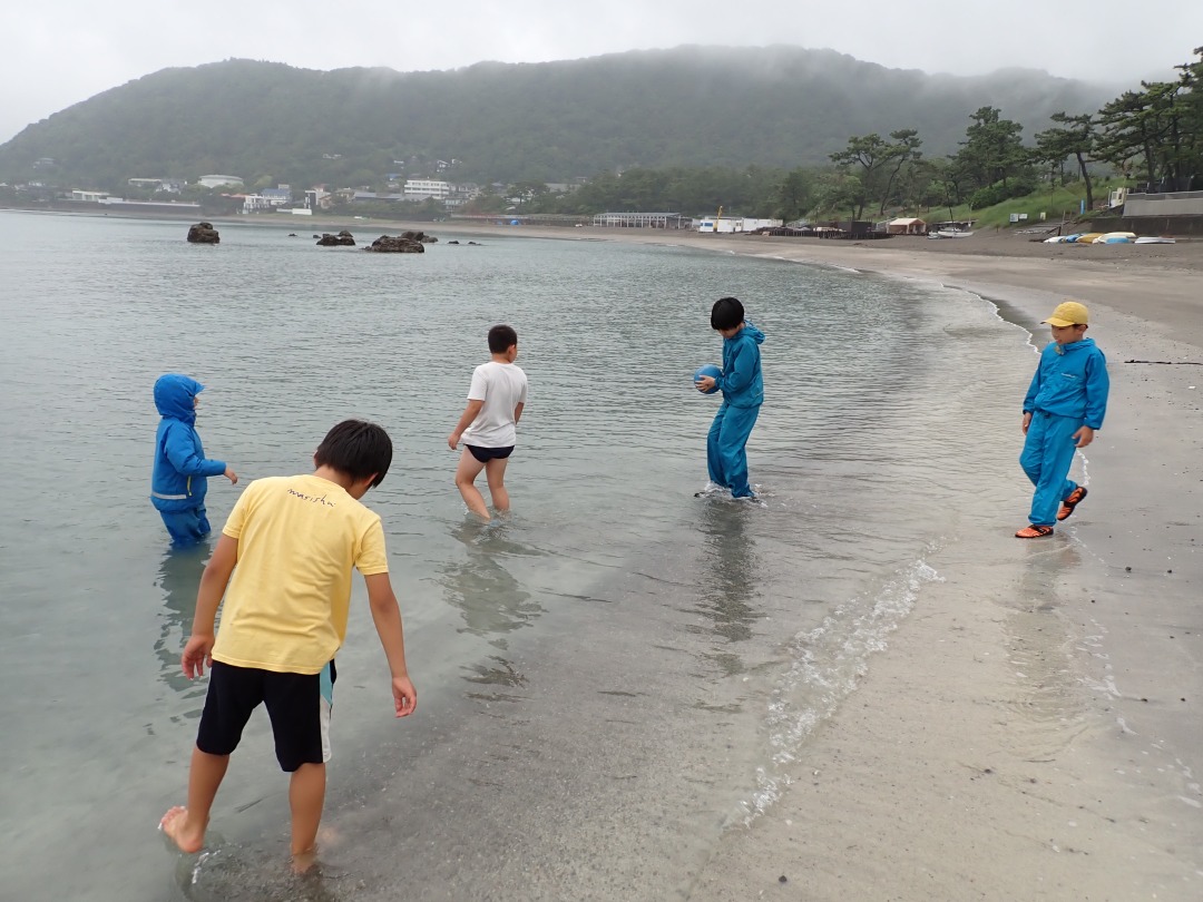 ボールを持って行き砂浜で遊ぶ雰囲気でしたが、一人が入るとみんなつられて海へ。