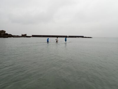 けっこう潮が引いていたので、防波堤まで歩いて到達。