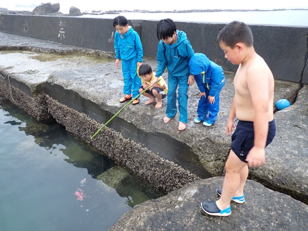 竹の釣り竿が落ちていて、釣りにチャレンジ。