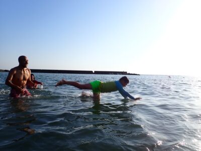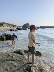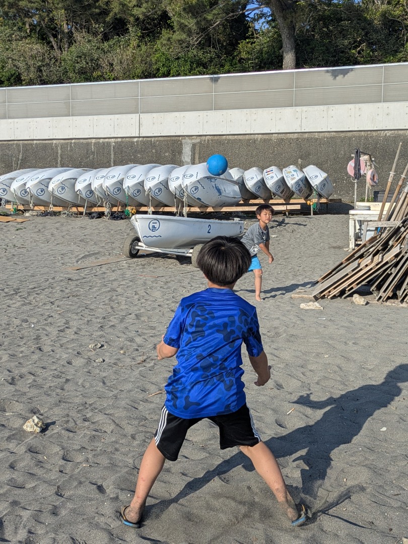 今日の「葉山キッズschool:木曜クラス」は、砂浜と海に分かれて遊びました!
