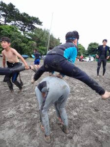 【ニッパーズ】ランスイムラン15分!2025-06-09今日のニッパーズは雨の中、一色海岸を貸し切り状態でランスイムラン15分を行いました!みんな、ライバルは自分だ!と気合を入れてスタート。終了後は、自分に勝った、負けた、引き分けた?と振り返り来週以降リベンジ!と。海も少しずつ暖かくなり活動の幅が広がります! また来週!