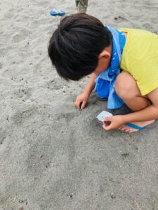 【ビーチクリーン】小さいゴミをがんばって拾いました!