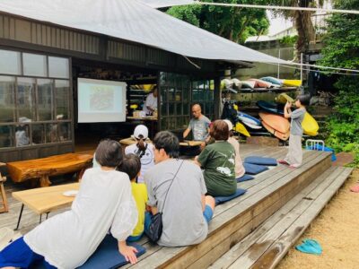 はじめに葉山の海と世界を取り巻く海ゴミの海洋汚染の現状について、8年前に子ども達が一色海岸で拾ったレジンペレットを東京農工大学の高田秀重先生に分析していただいたこと等をお話しました。