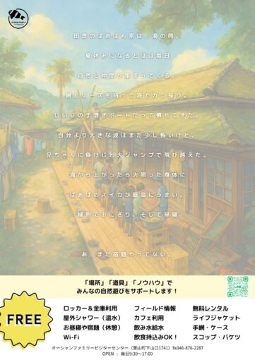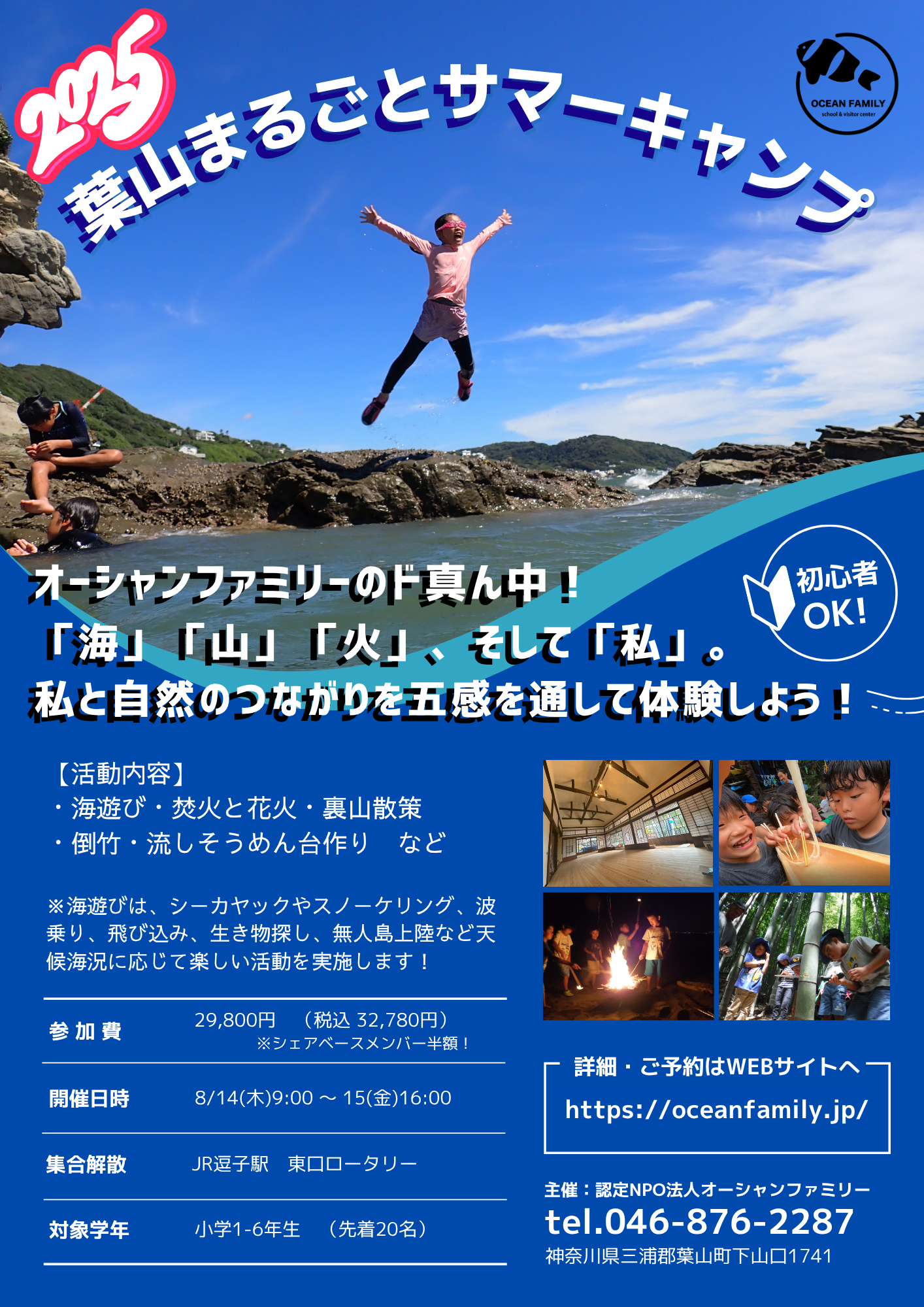 オーシャンファミリーのド真ん中「海」「山」「火」「食」まるごと体験できるキャンプです!