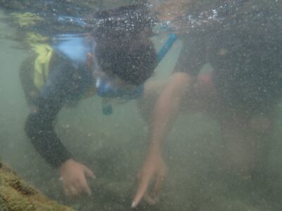 【Pre】マスク&スノーケルで海の中を覗いたぞ~!2025-07-02今日の「Pre」は、マスク&スノーケルで海の中を覗きました! ビジターセンターに集合。 小磯からエントリー。 フロートに乗って、浅くて生きものがたくさんいるポイントへ。 また来週!