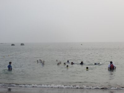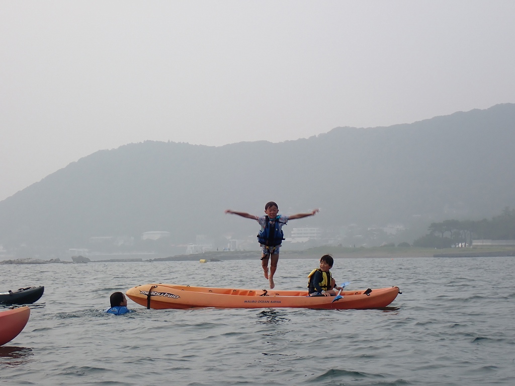 予報より少し風が強かったですが湾内で繰り返し練習をし、最後はみんなで少し沖に出て希望者はドボンッと飛び込みました!