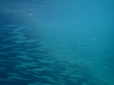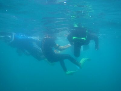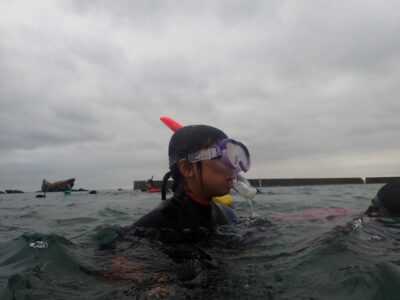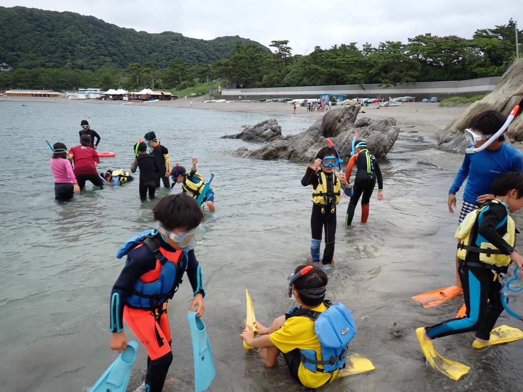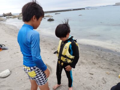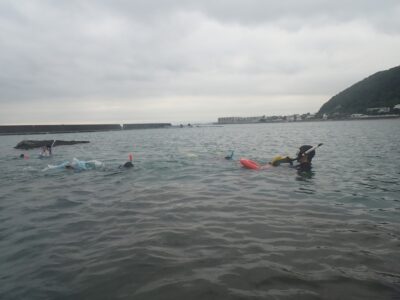 バディになって2グループに分かれ、一色海岸からエントリー。