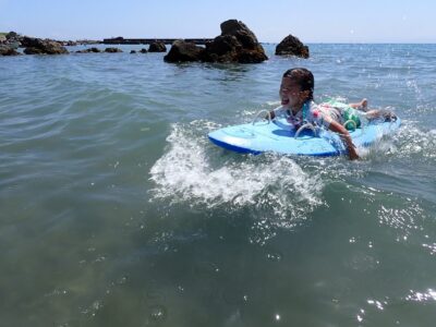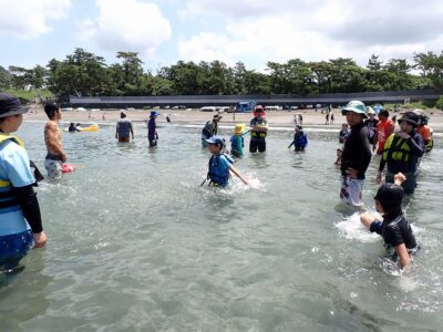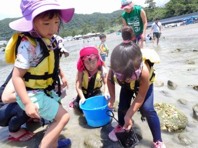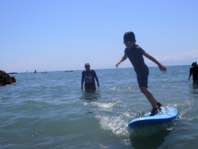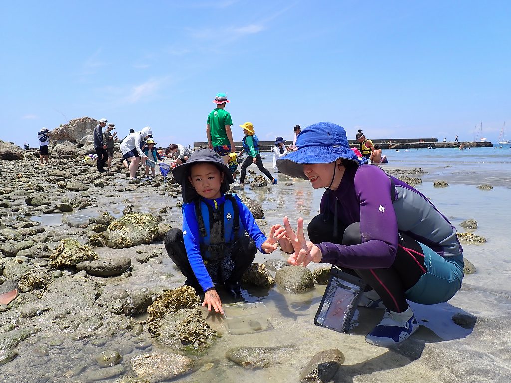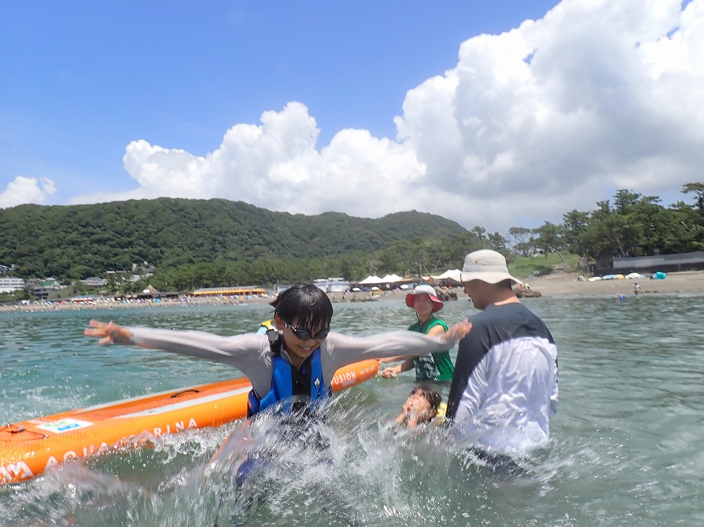 サーフボードを使ったり、磯で生き物を捕まえたり、SUPに挑戦したり