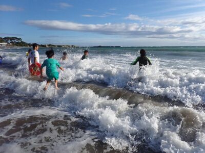 【ニッパーズ】台風ウェーブ!2025-07-14今日は夏休み前、最終回!台風のうねりが入っていた一色海岸にて波プログラムを行いました。台風ウェーブのパワーと楽しさを感じるダイナミックな活動に子ども達はとってもエキサイティングな表情で波に向かってました! 次回は夏キャンプ!みんな元気に集まってね!お楽しみに!