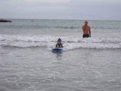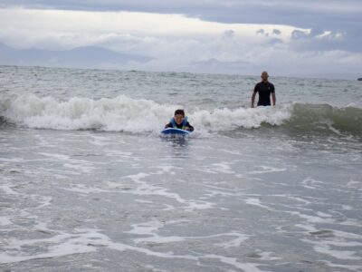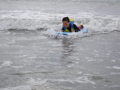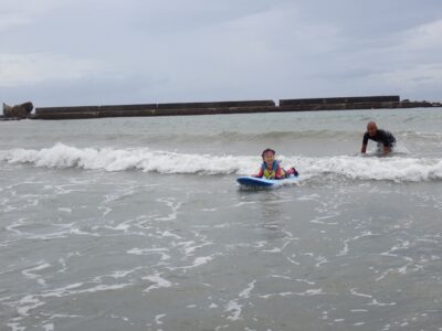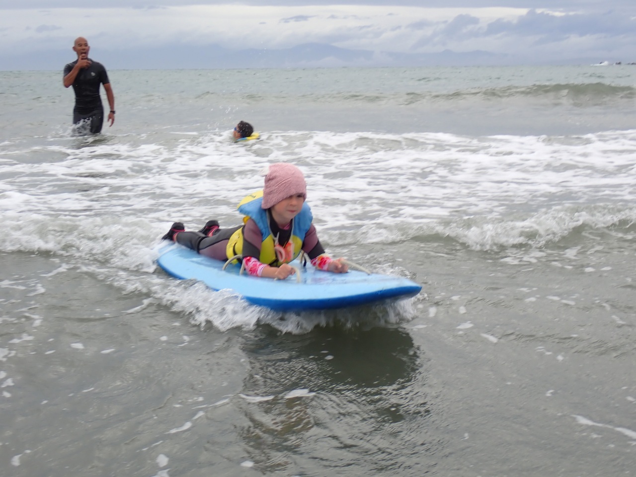 【Pre】サーフィンしたぞ~!2025-07-16今日の「Pre」は、初めてサーフィンにチャレンジしました! ビジターセンターに集合。 一色海岸。 子ども用のボードでサーフィンに挑戦! お湯を浴びて帰ります。 帰り道、アスファルトの上を這うアゲハチョウの幼虫を発見。 おそるおそるつかんで、踏まれないよう草むらに逃がしてあげていました。 これで夏休み前はおしまい!デイキャンプで会いましょう!