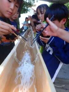 戻ってシャワー(水風呂?)を浴びたら、流しそうめん!