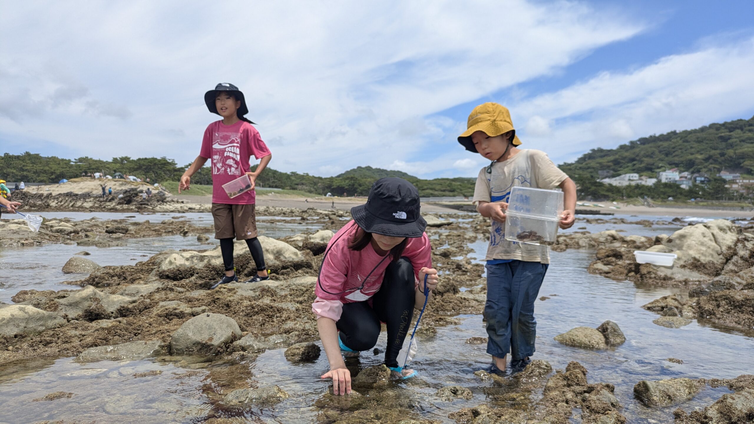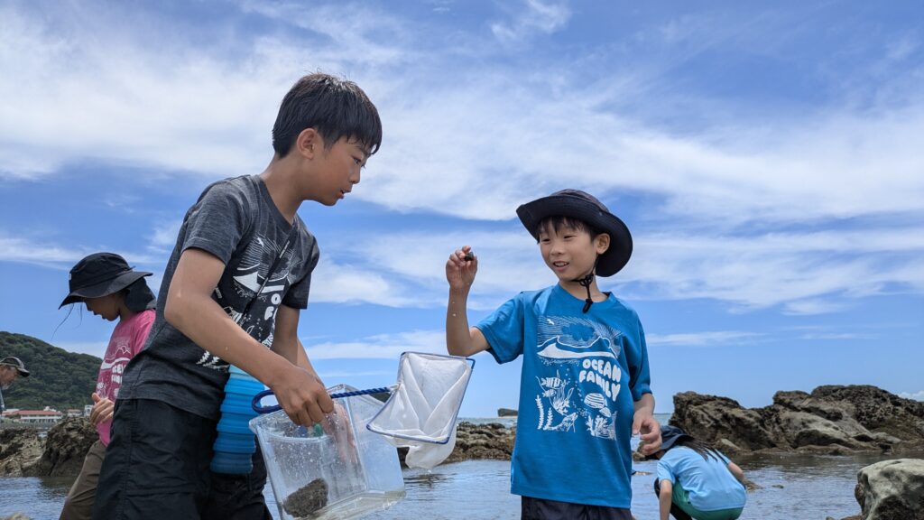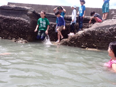 今日の「マリンキッズ:日曜クラス」は、生きものさがしと台風ウェーブで遊びました!