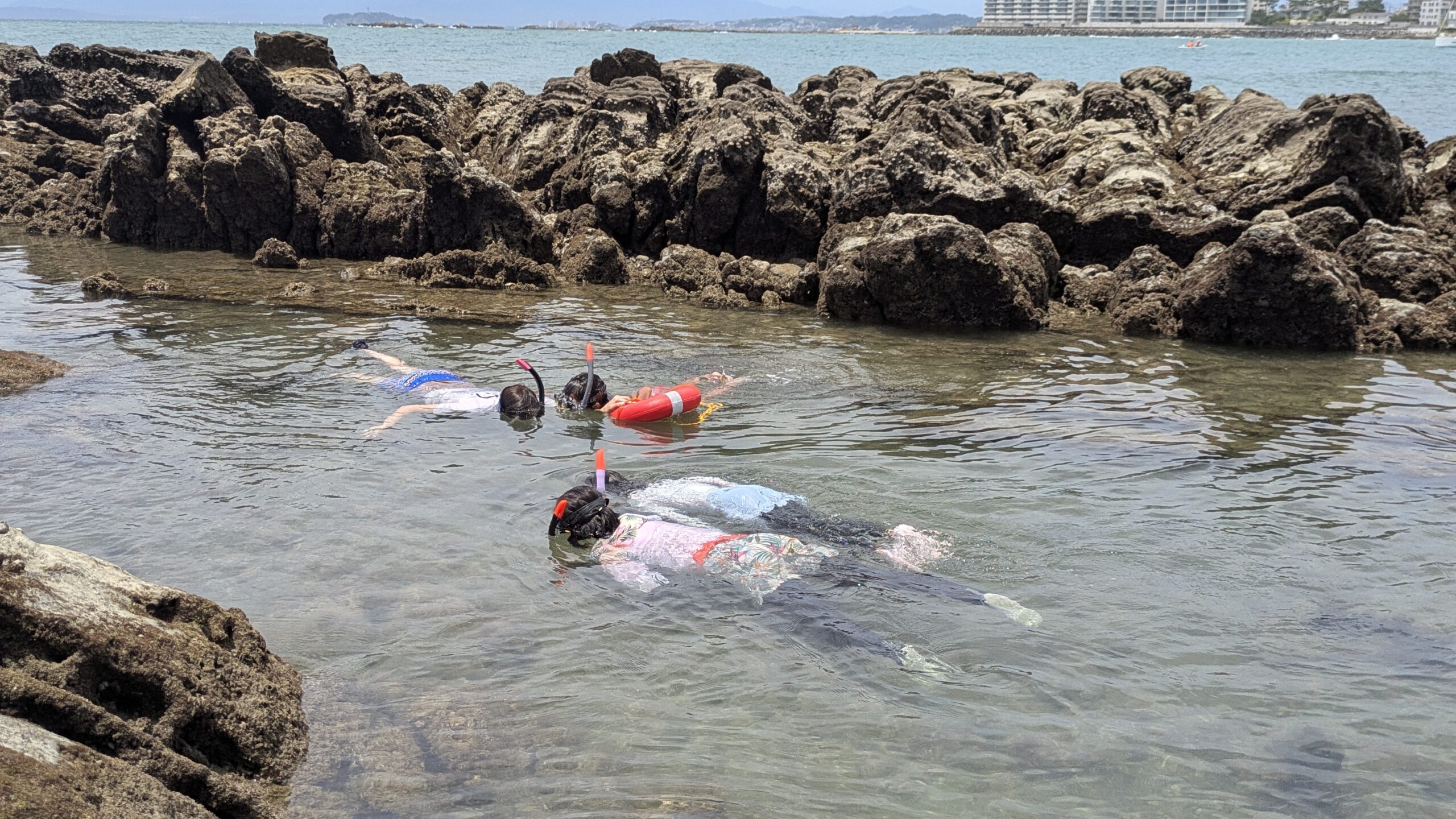 みんなで話して、カヤックは断念し、午前中は磯の生きものさがしとスノーケリングに決定。