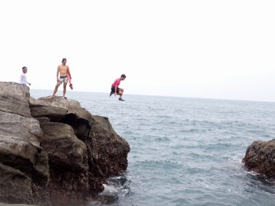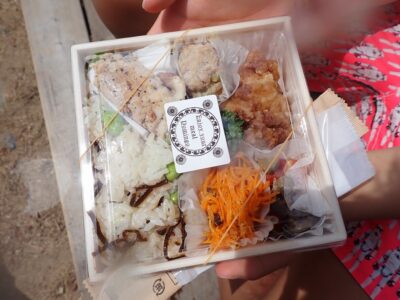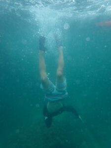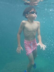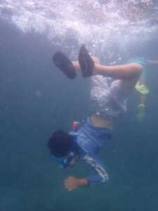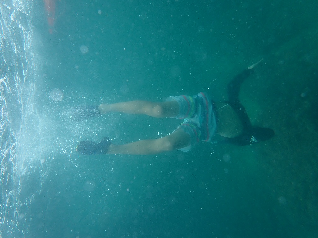 小林コーチからの差し入れ「桃」を食べて海へ。
