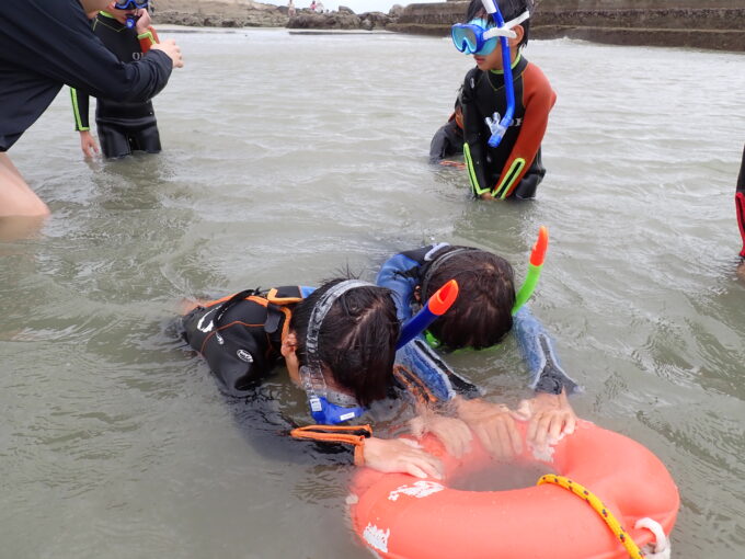 その後、シュノーケリングの基礎知識・技術練習。