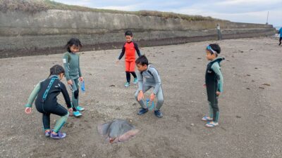 【ビジターセンター】夏休みデイキャンプ@8/122025-08-12今日はビジターセンター企画、夏休みデイキャンプを行いました!午前中は磯での生き物観察。午後は一色海岸で波乗りを行いました!初参加の子もいましたがすぐに打ち解け積極的にチャレンジしてくれました! ご参加、ありがとうございました!