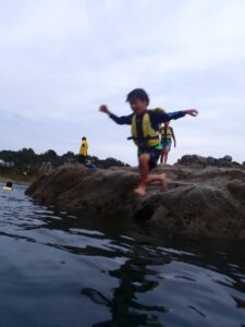 【葉山キッズ:木曜】2学期スタート!2025-09-04今日から夏休み明けスタートの「葉山キッズschool:木曜クラス」。スノーケリングと飛び込みをしました! ビジターセンターに集合。 準備をして出発。 長者ヶ崎海岸。 ライフジャケットあり&なしで2チームに分かれてエントリー。 エビ島のまわりをスノーケリングし、希望者は上陸して飛び込み。 また来週!