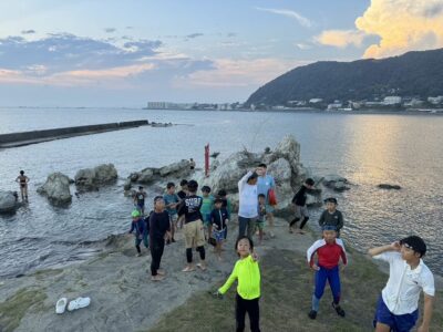 【ニッパーズ】スイムプログラム!2025-09-08今日のニッパーズは先週に引き続きスイムプログラムを行いました!一色海岸のいつものところはアンドンクラゲが溜まっていて急遽場所変更。高学年は防波堤、低学年は小磯浜で実施しました!活動の最後には波打ち際でウナギ?をゲット!珍しいお客様にみんな大興奮でした! また来週!