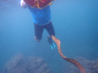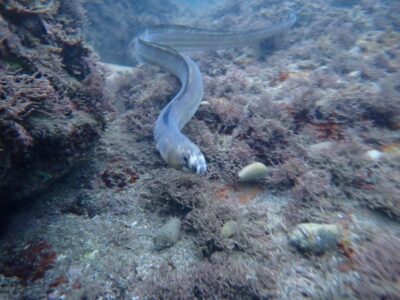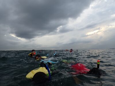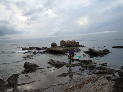 【葉山キッズ:木曜】スノーケリング!2025-09-11今日の「葉山キッズschool:木曜クラス」は、スノーケリングをしました! ビジターセンターに集合。 ちょうど雨が降ってきた中、小磯からエントリー。 海の中は台風後の濁りもとれて、かなりキレイ!雷も大丈夫そうだったので、予定変更で小磯の先端をぐるっと回ることに! ウツボがしきりにジャンプする珍しい姿! また来週!