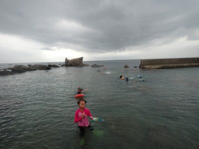 【葉山キッズ:金曜】スノーケリング!2025-09-12今日の「葉山キッズschool:金曜クラス」は、スノーケリングをしました! ビジターセンターに集合。 準備をして出発。 小磯につくと遠くで雷が聞こえたので、しばらく待機。小磯先端までいくのはリスクが高いため、予定変更で希望者のみ防波堤をまわって早めに帰ることに。 入らないグループは小磯で自由に遊びます。 入るグループは、岩場からエントリー。 ちょうどあがる頃に雨が降ってきたので、みんなで帰ります。 また来週!