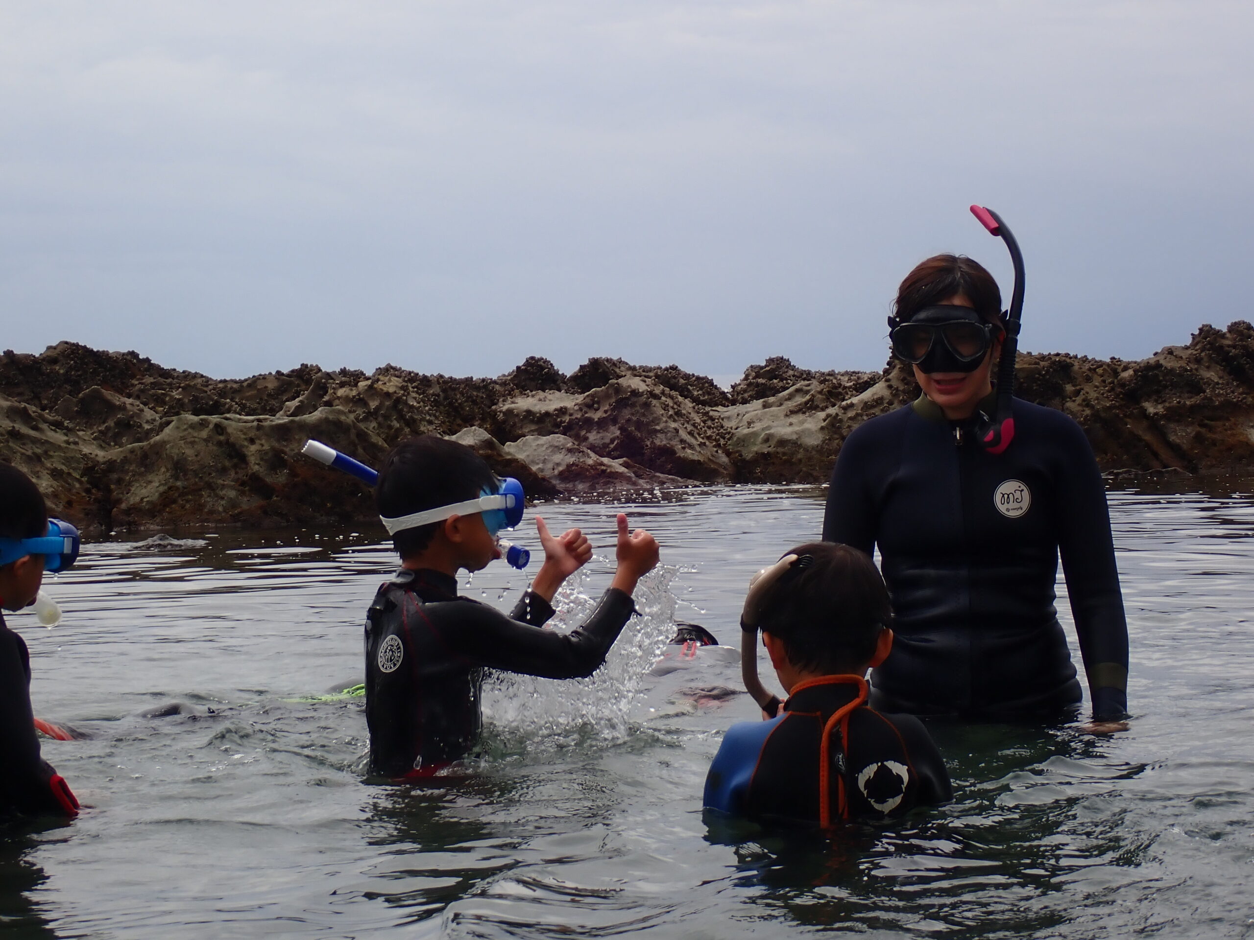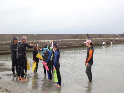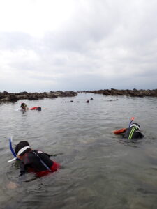 水慣れ・浮く練習・シュノーケルマスクの付け方やフィンティングを丁寧に。