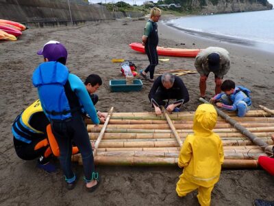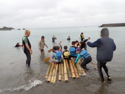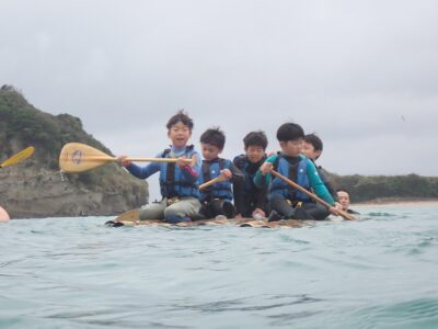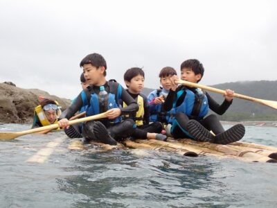 【ファミリー教室:土】竹イカダ&塩作りに挑戦!2025-10-11今日のファミリー教室は、雨の中竹イカダに挑戦し、汲んできた海水から塩作りを行いました。オーシャンファミリーのコンセプト「海・山・火・私(食)」すべての要素が入った楽しく美味しい達成感あふれる自然体験になりました! 来月はシーカヤック!