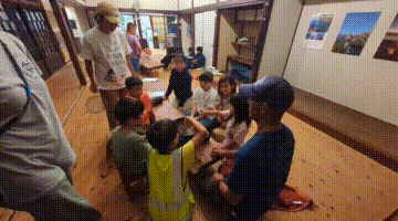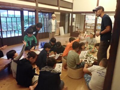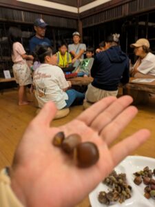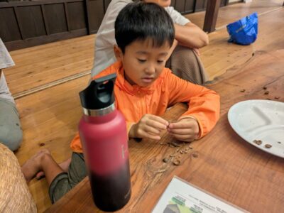ビジターセンターに戻って、ドングリを水につけ浮かんできたのは取り除きます。