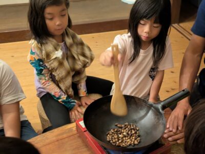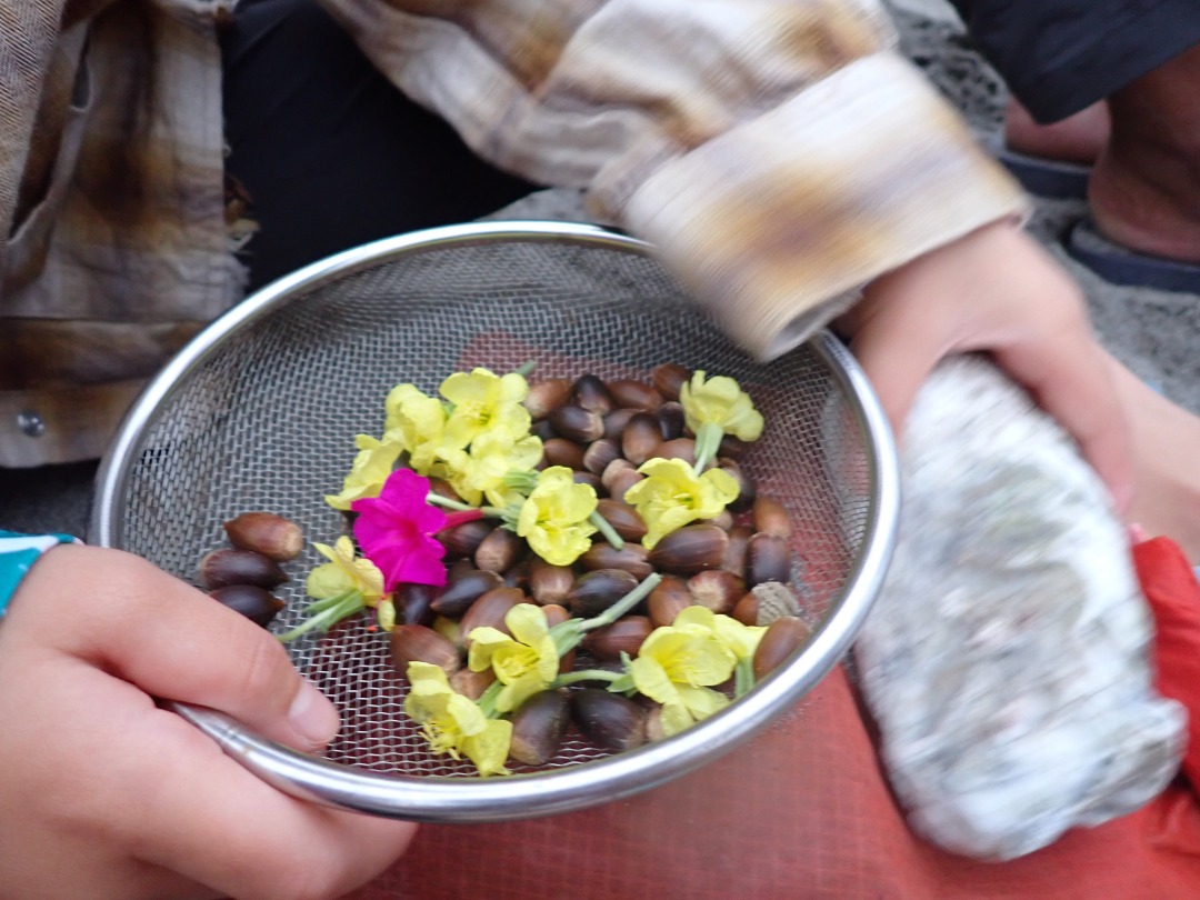 今日の「葉山キッズschool:火曜クラス」は、ドングリを拾って炒って食べました!
