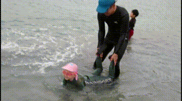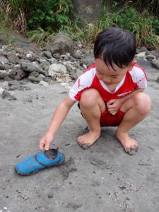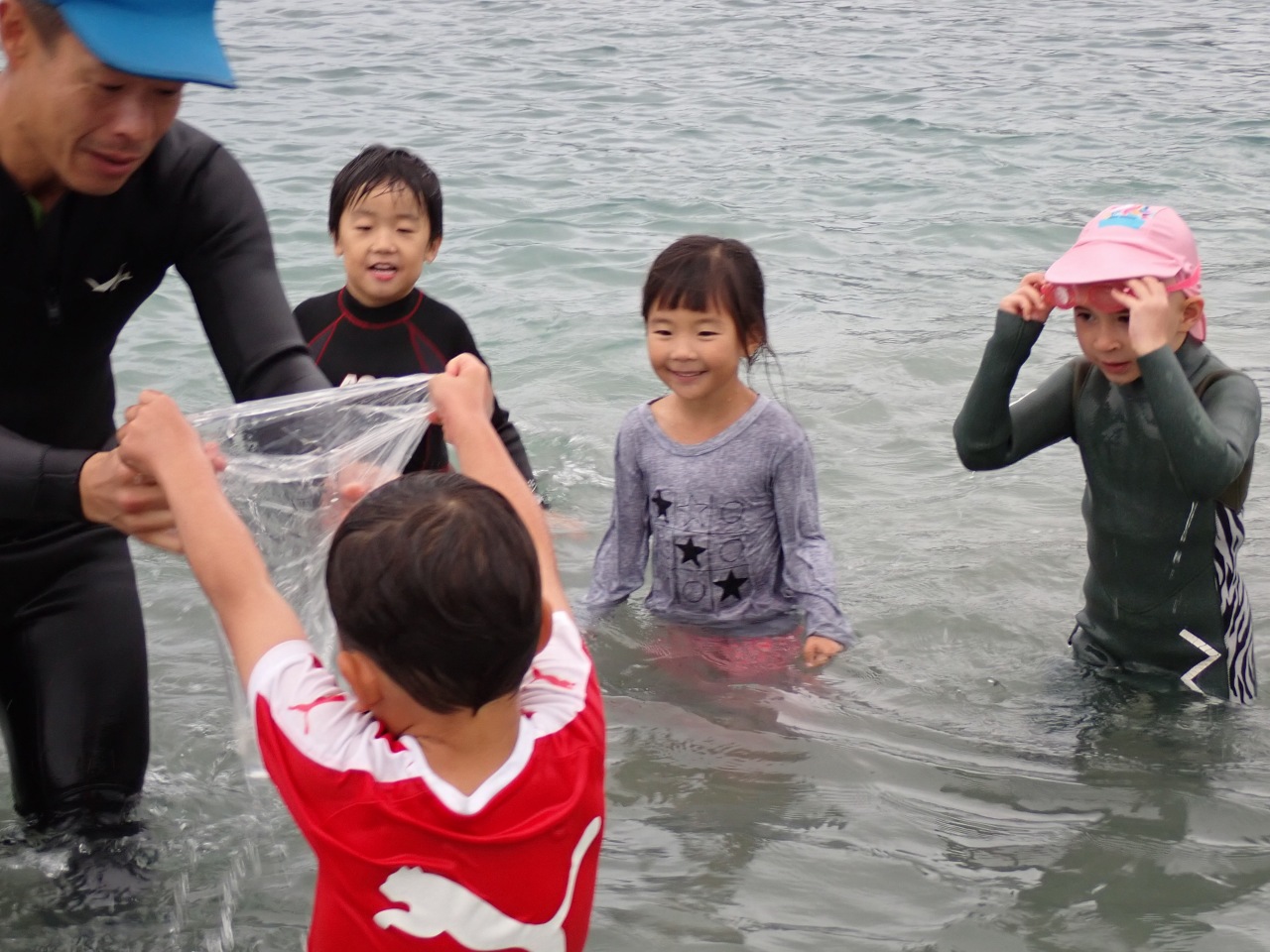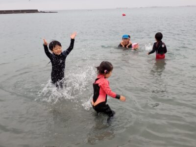 一色海岸で遊びます。 陸で遊ぶと言っていた子も海に引き寄せられていき、ほぼ全員入っていました。笑