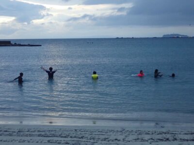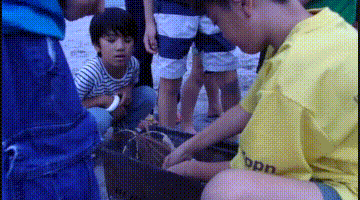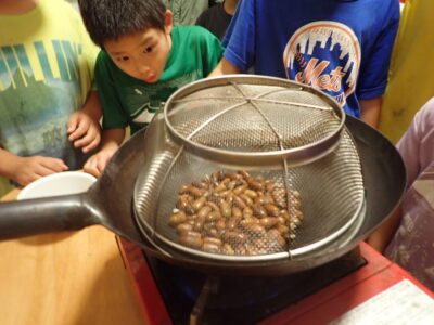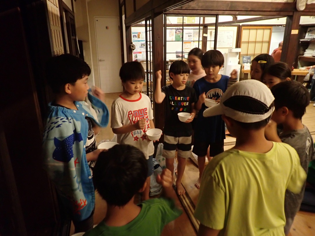 ビジターセンターに戻って、ドングリを水につけ浮かんできたのは取り除きます。