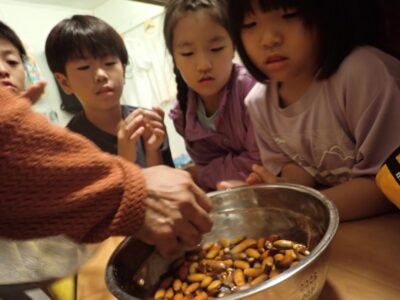 今日の「葉山キッズschool:木曜クラス」は、ドングリをとって食べました!