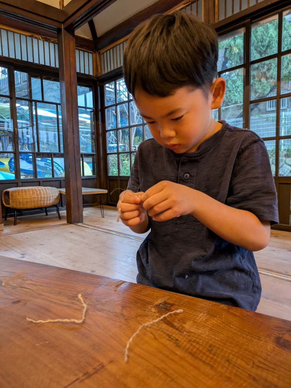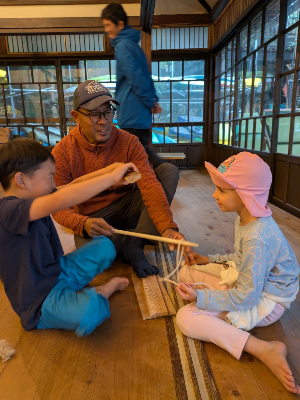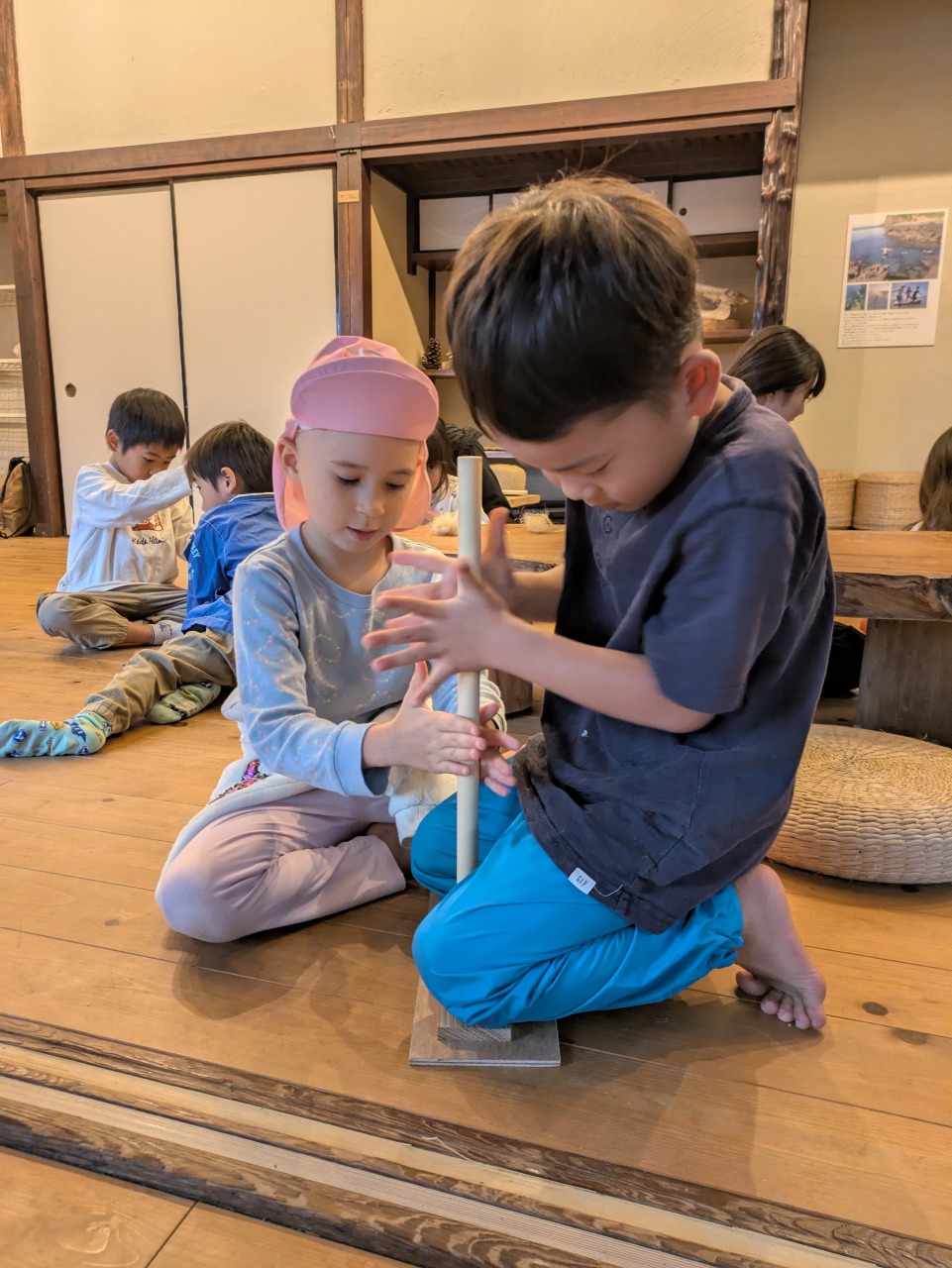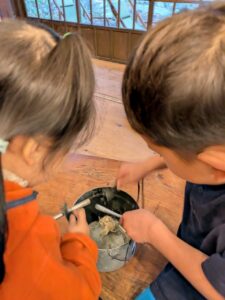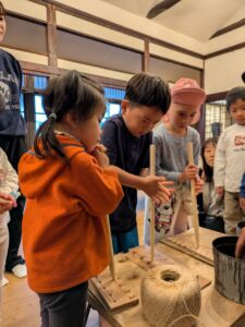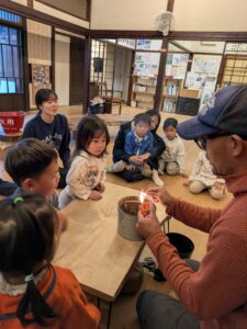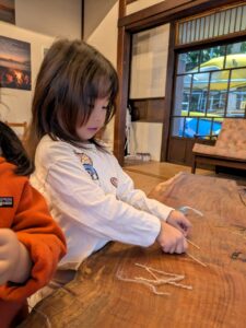 【Pre】火おこしをしたぞ~!2025-10-22今日の葉山は真冬のような寒さ&雨。「Pre」は珍しく(今年初?)外には行かず、室内で火おこしにチャレンジしました! ビジターセンターに集合。 現代の火起こし方法、ライターやマッチの仕組みを説明。 縄文時代の人が行っていた火起こし方法にチャレンジ。まずは麻ひもをほぐして、火種をうけるものをつくります。 手で棒をまわして板と擦ります(きりもみ式) 。 次に、ひもを使ってより高速で棒をまわします(ひもきり式)。 最後に、ファイヤースターターで。 何度もトライして、みんな火をおこすことが出来ました! お湯を沸かして、ココアで乾杯! なんだかいつもより美味しく感じたね!笑また来週!