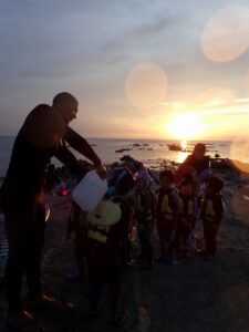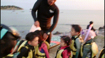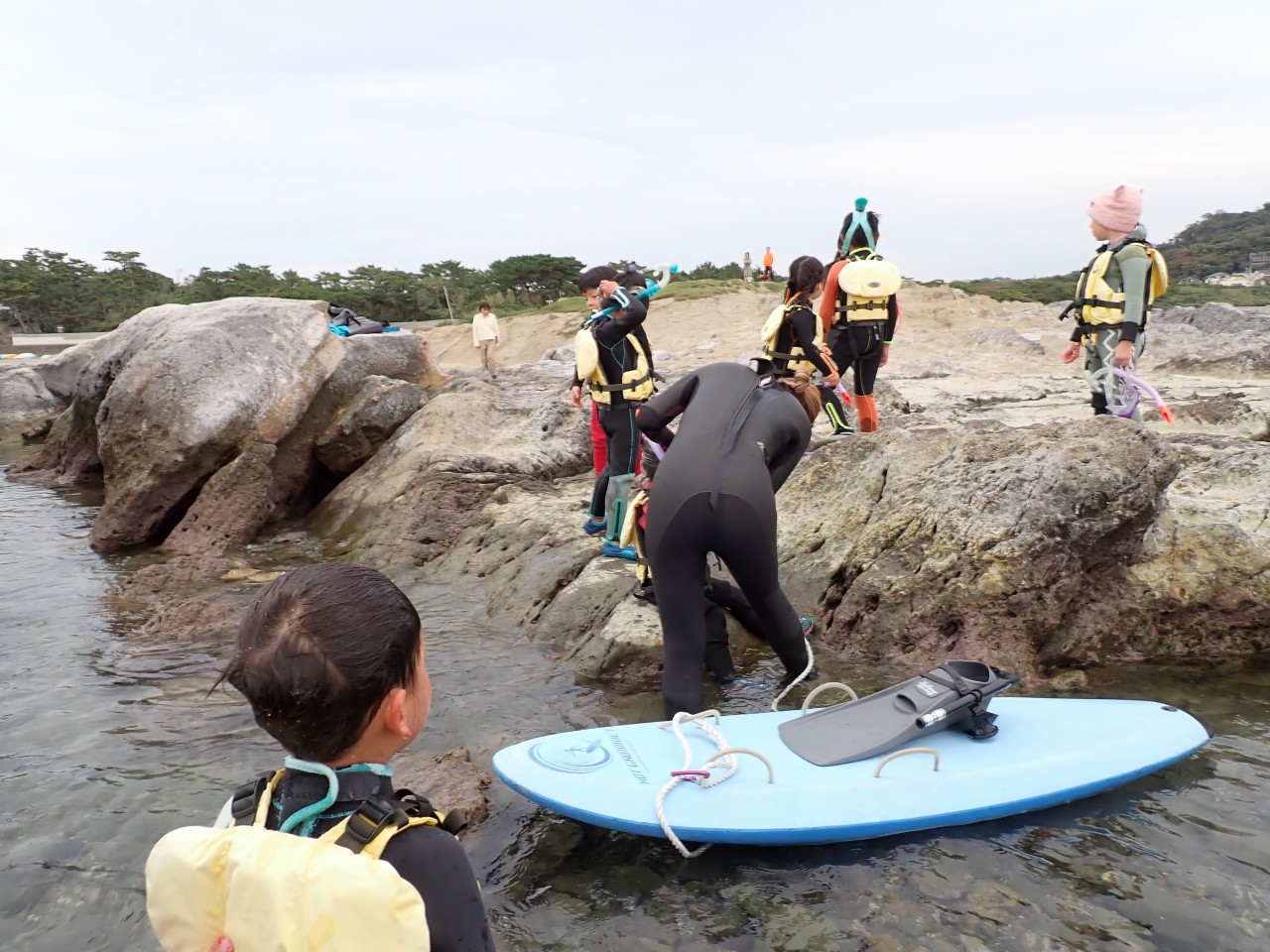【Pre】海の中を覗いたぞ~!2025-10-29今日の「Pre」は、スノーケルマスクをつけて海の中を覗きました! ビジターセンターに集合。 準備をして出発。 小磯でSUPとニッパーボードに乗ってエントリー。 イセエビ。 ヒラメ。ソフトコーラル(軟質サンゴ)の一種。(ビロードトゲトサカ?)夕焼けに染まる空がキレイ! あがったら、お湯を浴びてあたたまります。 みんなで! また来週!