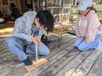 次に紐を使って2人組で行う「ひもぎり式」に挑戦。