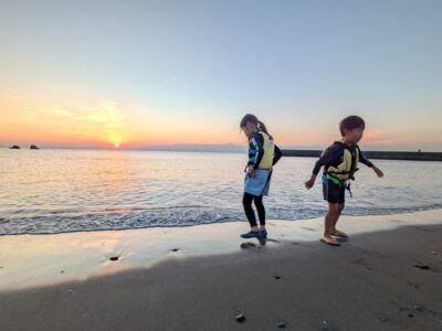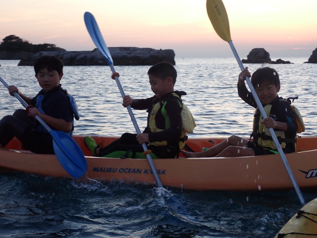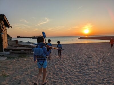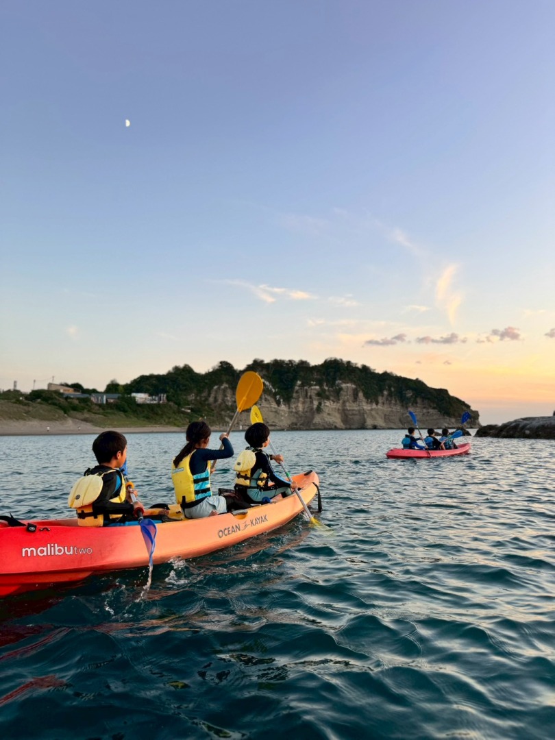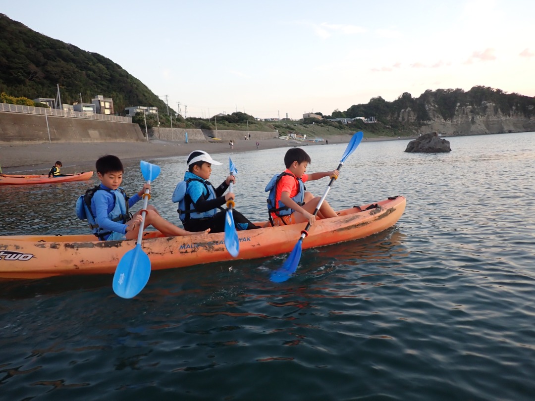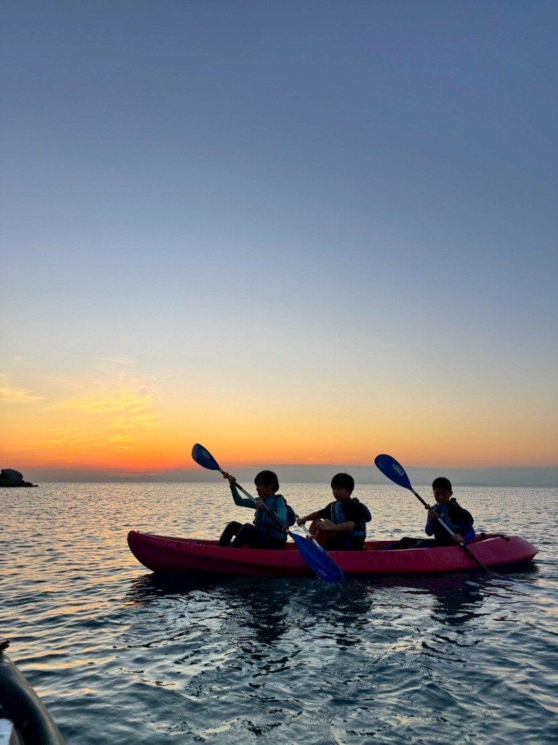 今日の「葉山キッズschool:木曜クラス」は、夕焼けを眺めながらカヤックを漕ぎ、焚き火であたたまりました!