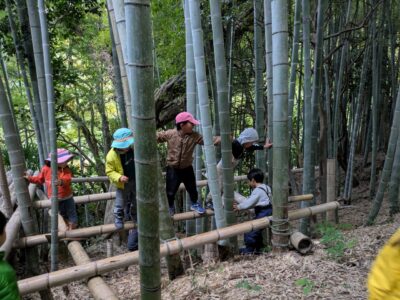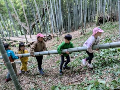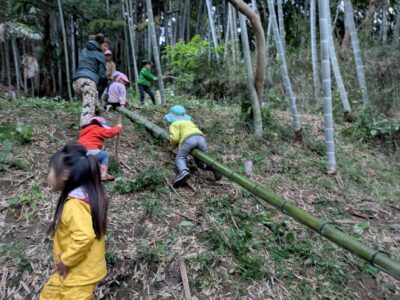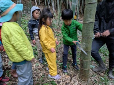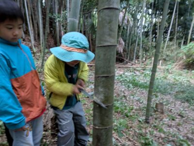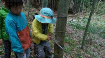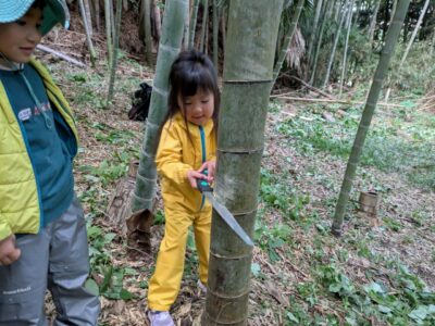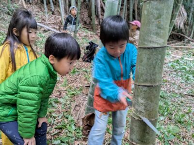 今日の「Pre」は、イカダを作るように竹を切り出しました!