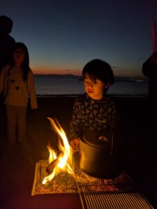 今日の「葉山キッズschool:木曜クラス」は、焚き火でお湯を沸かしてホットドリンクを楽しみました!