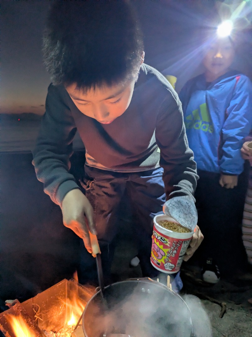 いつもより子ども達同士で協力し、火を囲んで美味しい飲みものと食べものを楽しんでいる姿が印象的でした。
