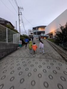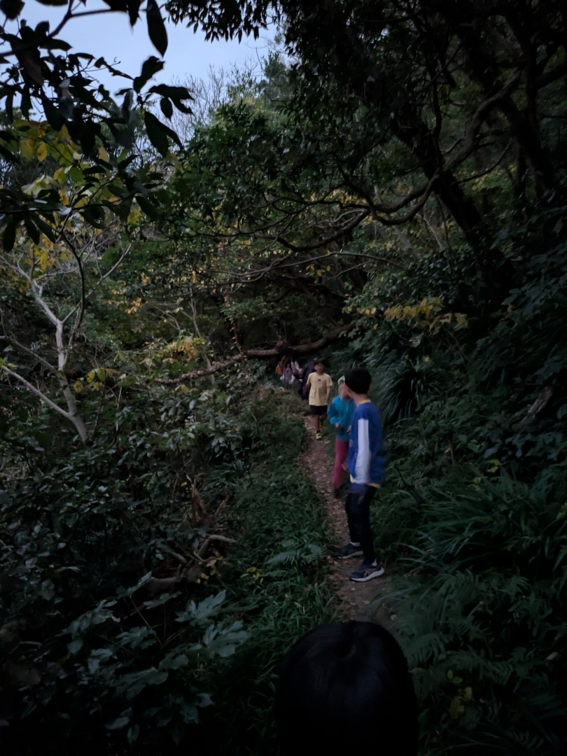 【葉山キッズ:火曜】暗やみウォーク!2025-11-25今日の「葉山キッズschool:火曜クラス」は、暗やみウォークとして峯山を歩きました! ビジターセンターに集合。 出発。 ここからトレイル。 久留和グランドで自由タイム。 帰りは、真っ暗な中を戻ります。目を凝らしながら手と足で探りつつ、みんなで声をかけあいながら歩きました。 明かりがあれば使わない感覚を研ぎ澄ませて歩いたので疲れますが、自分の中に眠っているアンテナが呼び起されたような新鮮な気持ちよさもありました! また来週!