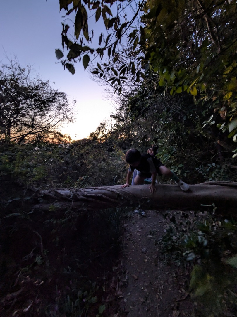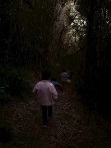 【葉山キッズ:金曜】暗やみウォーク!2025-11-28今日の「葉山キッズschool:金曜クラス」は、暗やみウォークとして峯山を歩きました! ビジターセンターに集合。 出発。 ここからトレイル。 久留和グランドで自由タイム。 帰りは、真っ暗な中を戻ります。 目を凝らしながら手と足で探りつつ、みんなで声をかけあいながら歩きました。 明かりがあれば使わない感覚を研ぎ澄ませて歩いたので疲れますが、自分の中に眠っているアンテナが呼び起されたような新鮮な気持ちよさもありました! また来週!