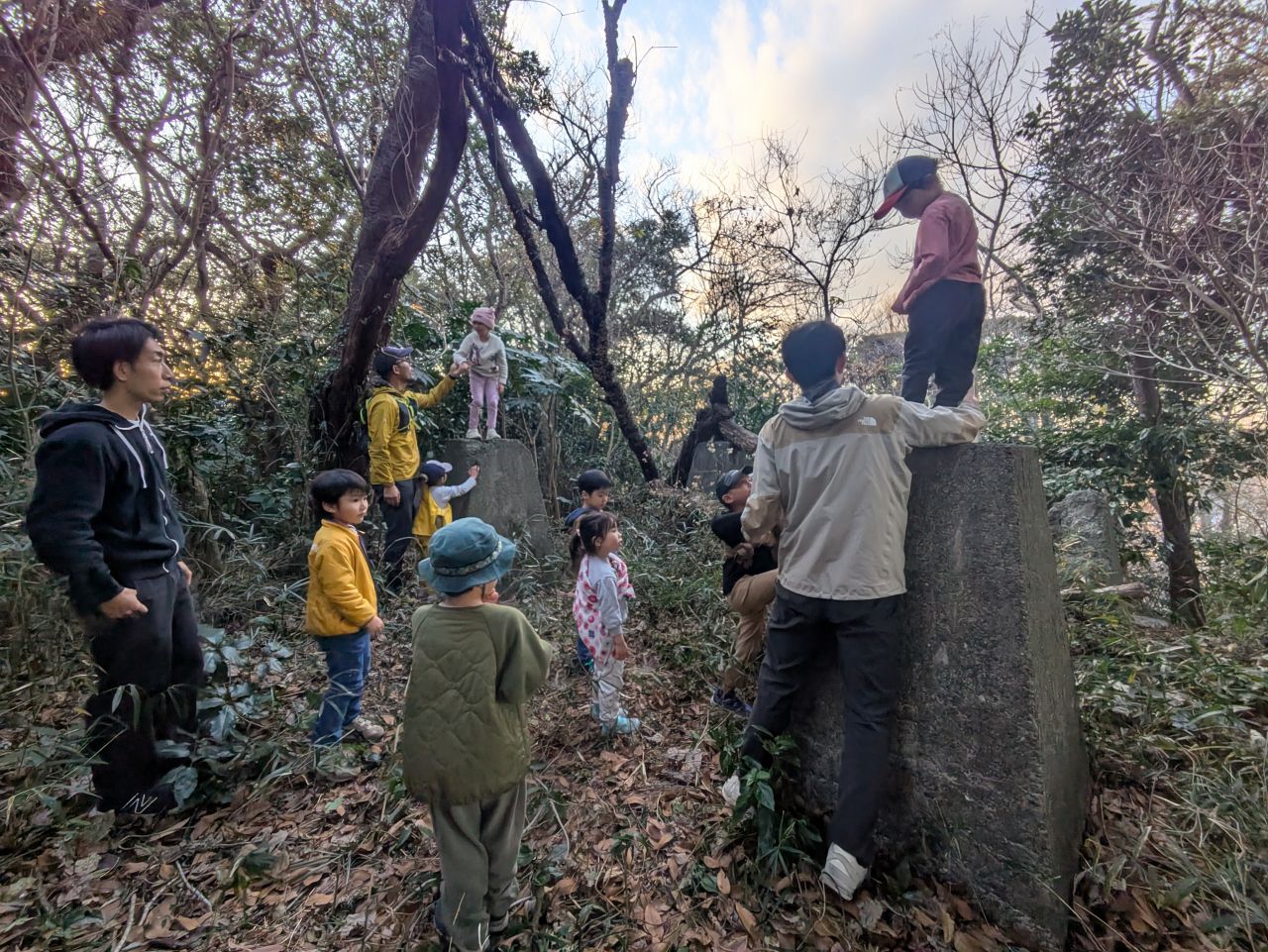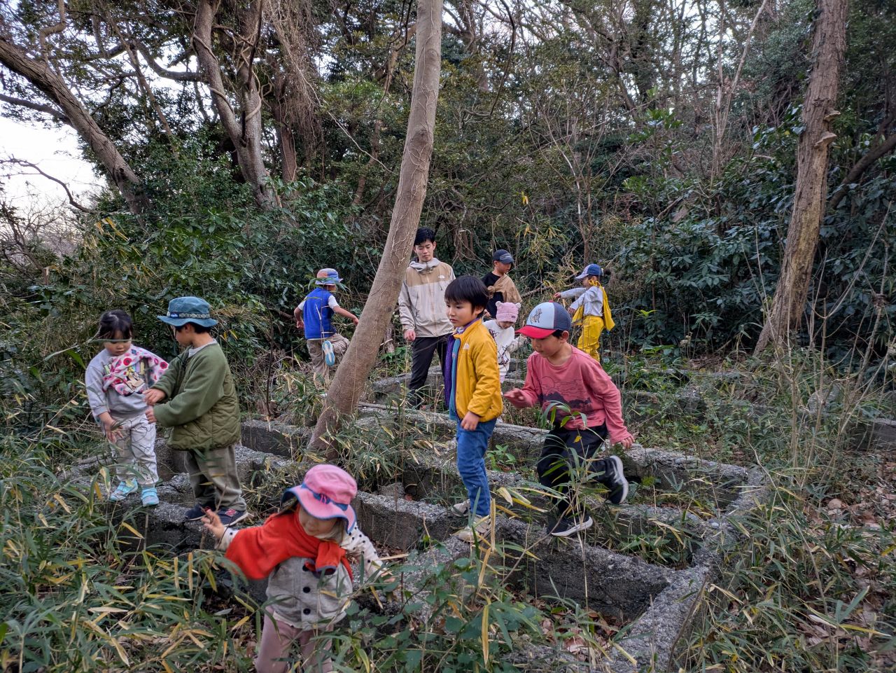 【Pre】戦争遺跡を見に行ったぞ~!2026-01-14今日から2026年スタートの『Pre』。峯山に眠る戦時中の遺跡を探しに行きました! ビジターセンターに集合。 準備をして出発。 ここから山道。 謎のほら穴。 戦時中の建造物の跡。 山道を目指して藪を進みます。 が、途中で断念。いったん退却し、違う藪をぬけて久留和グランドへ。 この時点で解散時間の17時。。。 急いで舗装された道を通って戻ります。 長者ヶ崎海岸を通って帰ります。 また来週!