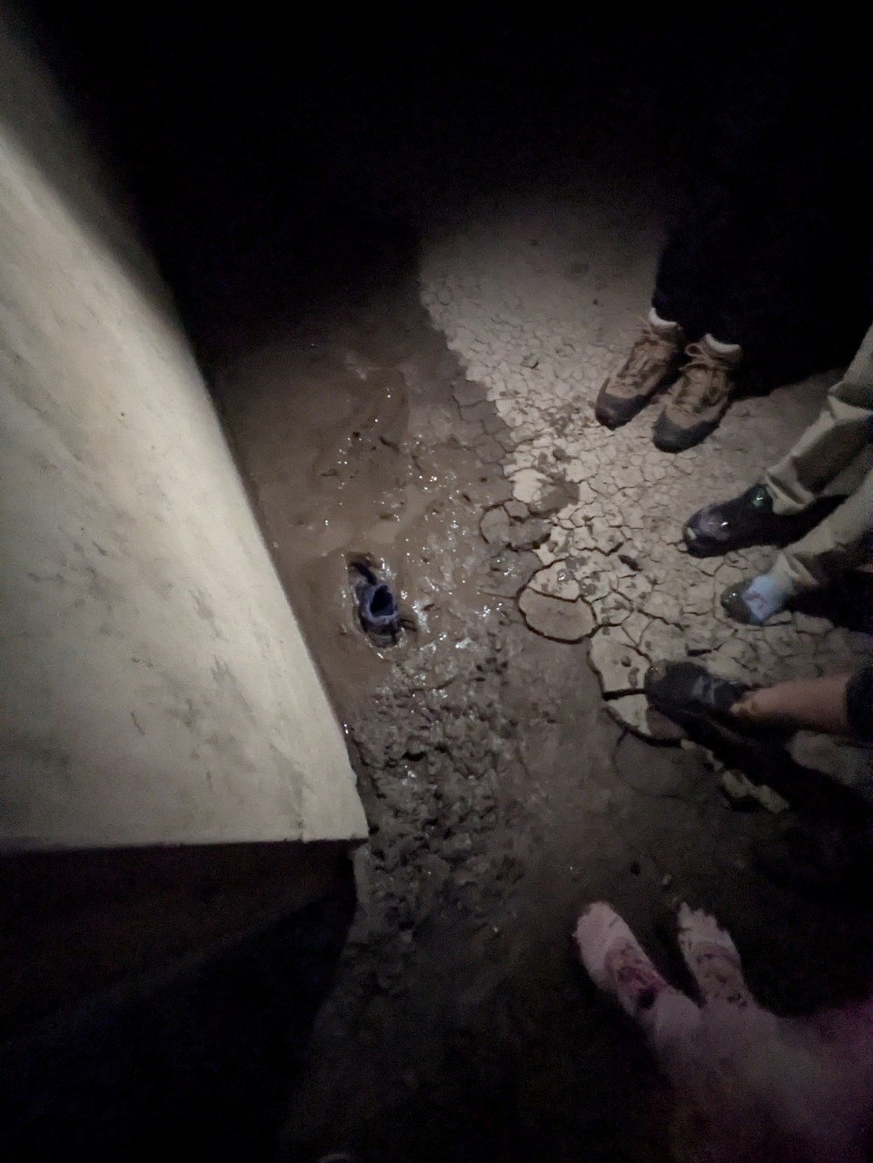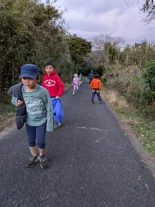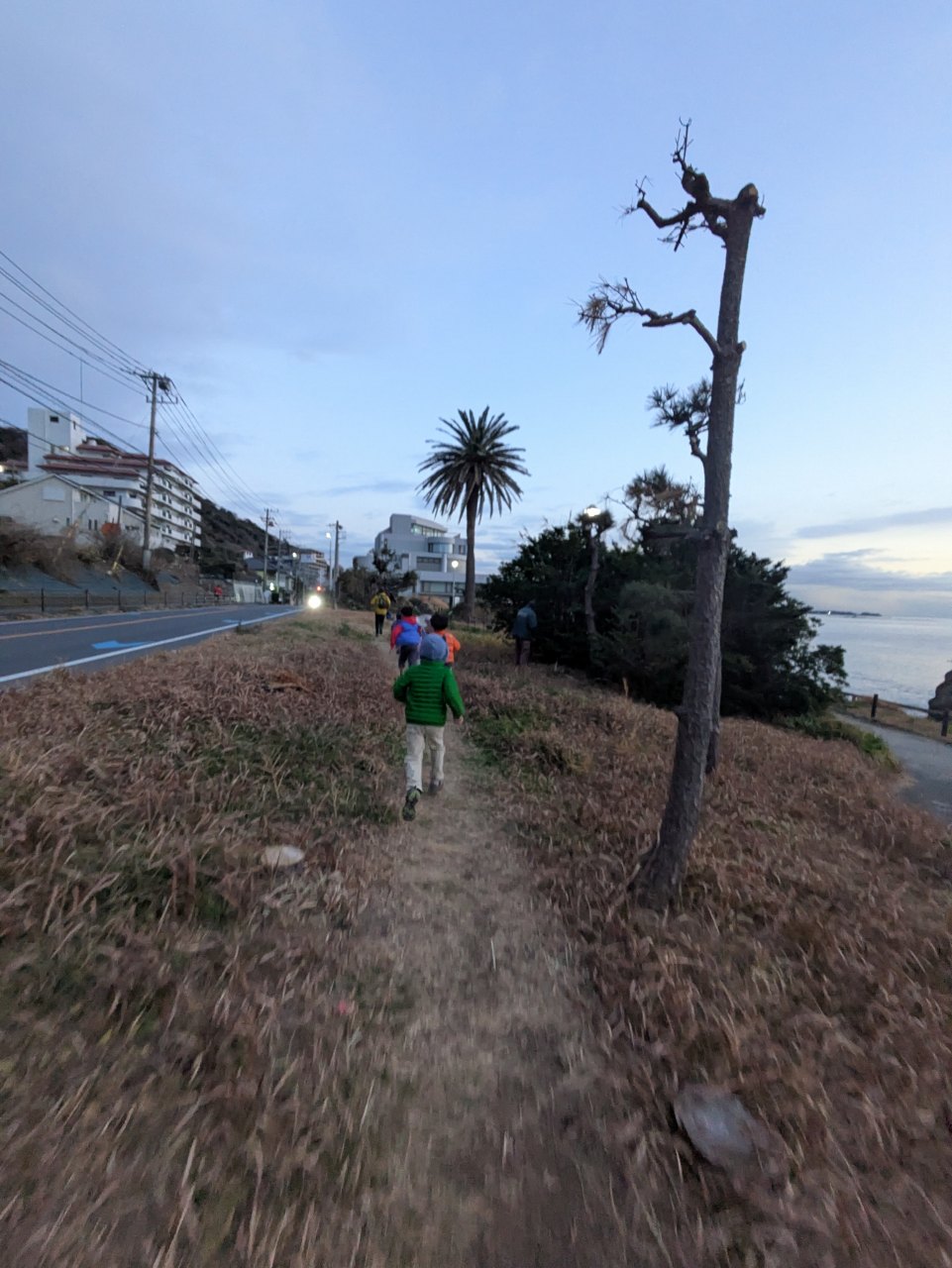 【Pre】立石の砲台跡へ探検に行ったぞ~!2026-01-21今日の『Pre』は、立石公園から山へ行き、砲台跡を探検してきました! 立石公園駐車場に集合。雪が舞っていました! 出発。 ここから道を外れて藪の中へ。 約100年前の大正時代に作られたと言われている砲台や弾薬庫などの遺構。 内部を探検! 溜まった泥に、靴が・・・。 コウモリ。 藪の斜面を上って道に出るとホッとしました! キレイな夕焼け。 走って帰ります。 また来週!