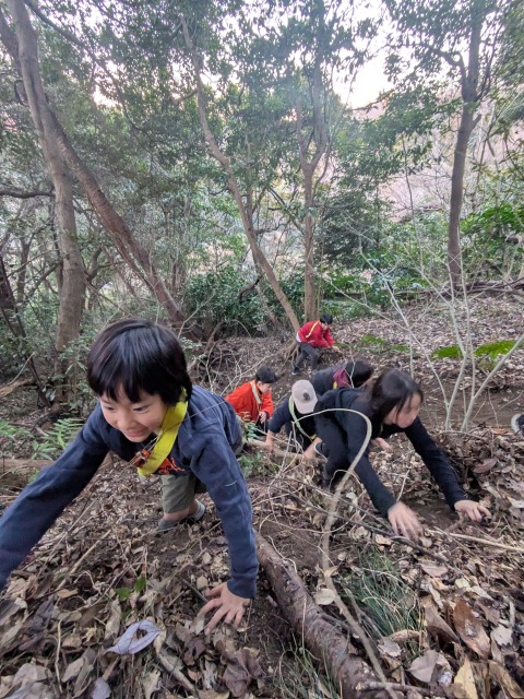 【ニッパーズ】蟻地獄コース!2026-02-02今日のニッパーズは「峯山・蟻地獄コース」!なかなかの傾斜に落ち葉や土が積もり、正に蟻地獄!子ども達はさすがに逞しく、お尻で滑り台に!その後は藪を漕ぎ、いつもの沼を横目に大根おろしへ!帰り迷うチームもありましたがみんな無事に生還してくれました! また来週!