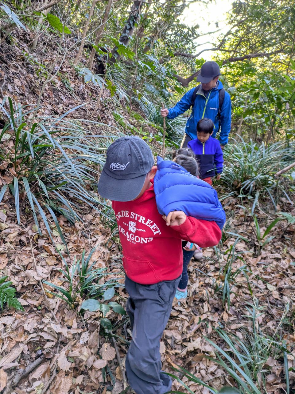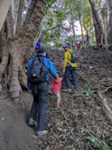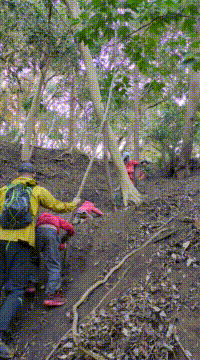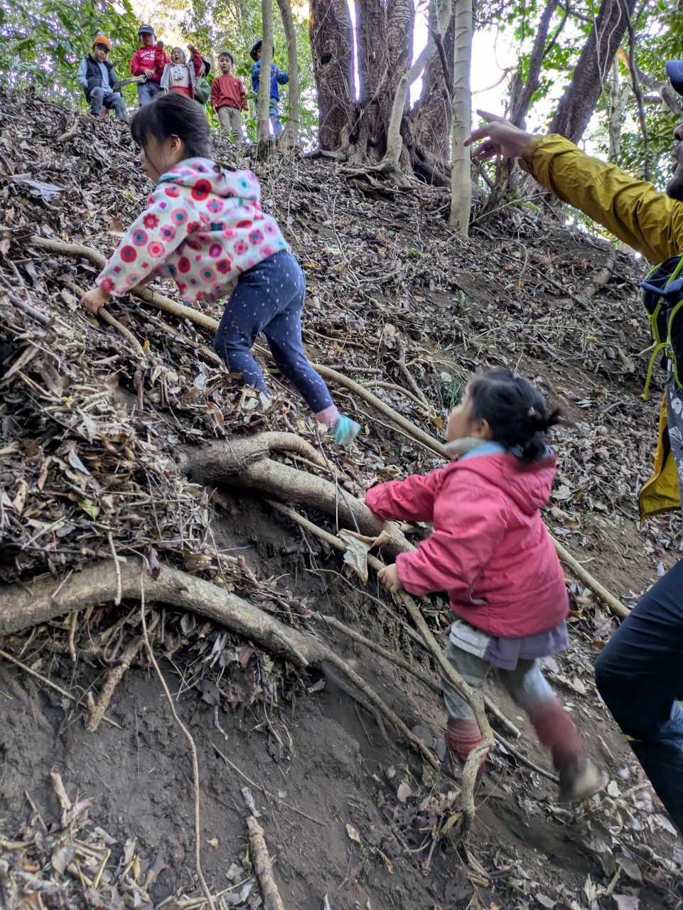 【Pre】蟻地獄へ行ったぞ~!2026-02-04今日の「Pre」は、峯山の蟻地獄コースへ行きました! ビジターセンターに集合。 準備をして出発。 ここからトレイル。 蟻地獄と呼んでいる、すり鉢状でサラサラの土がたまった場所。 頑張って登ったら、すべって遊びます。 山道をぬけて帰ります。 また来週!