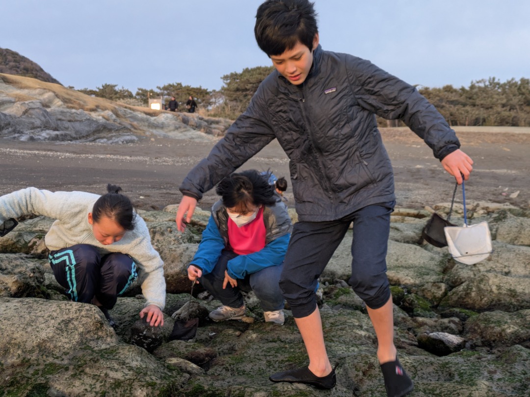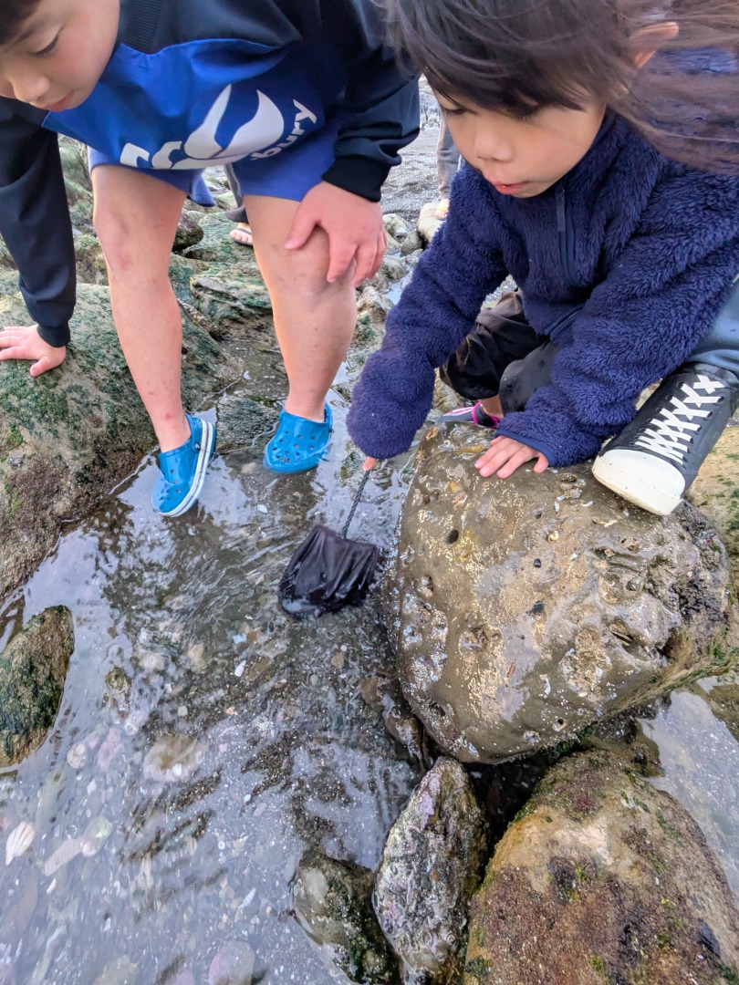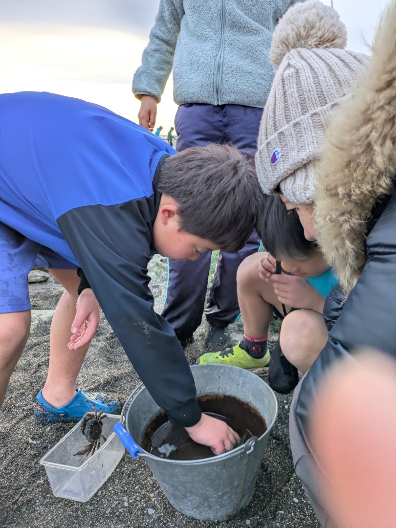 今日の「葉山キッズschool:火曜クラス」は、モクズガニをつかまえて味噌汁にしていただきました!