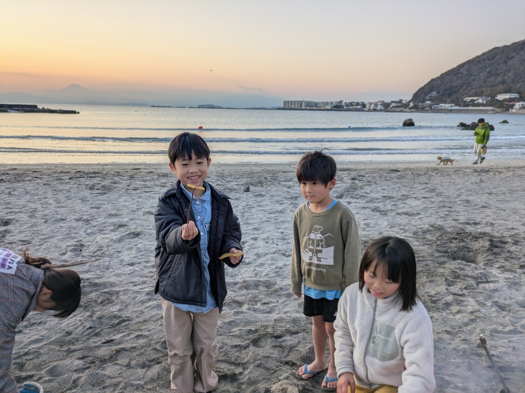 今日の「葉山キッズschool:金曜クラス」は、一色海岸で自由に遊びました。