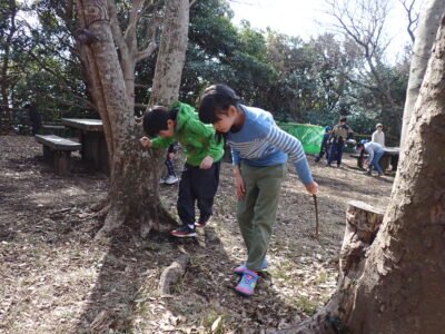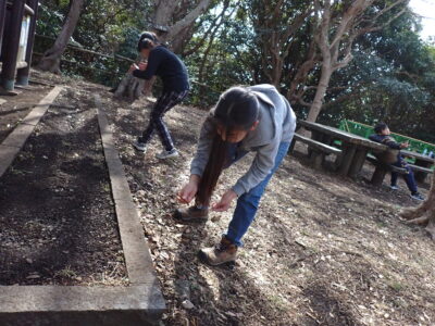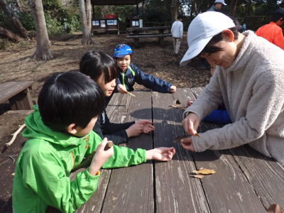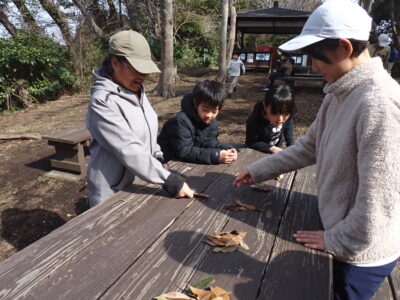 昼食後、「葉っぱさがしゲーム」のネイチャーゲームを♪