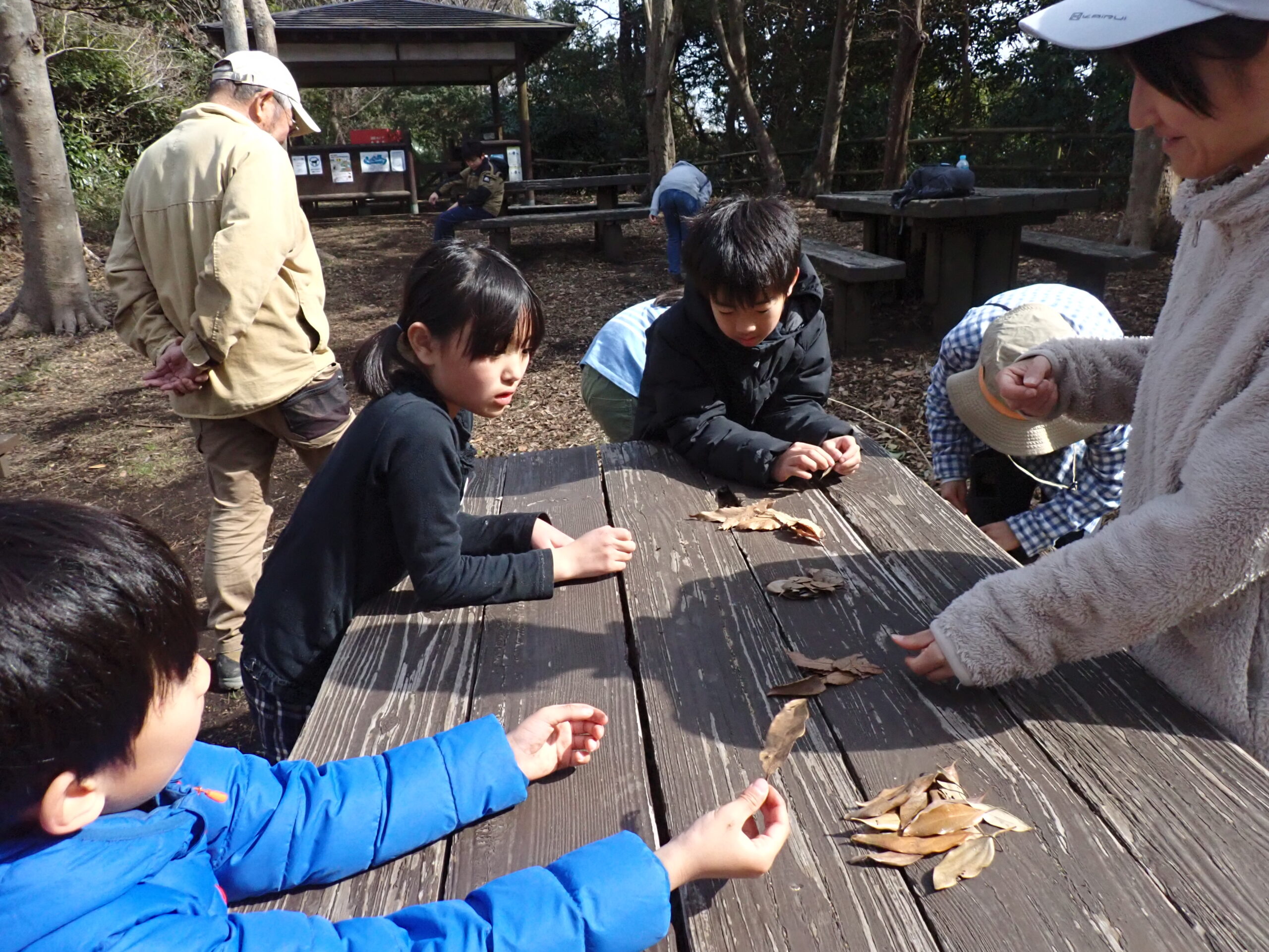 その後、それぞれの葉っぱは、どの木の葉か?みんなで探したり、