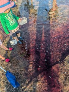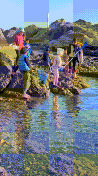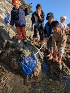 【Pre】三ヶ下の磯に行ったぞ~!2026-03-11今日の「Pre」は、三ヶ下海岸の磯で生きものをさがしました! ビジターセンターに集合。 一色海岸から三ヶ下海岸へ。 生きものさがし。 海が紫に!刺激を受けたタツナミガイが身を守るために紫色の液体を出したのが原因でした! ふだんあまり行かない磯でしたが、生きものもたくさんいて面白かったです! また来週!