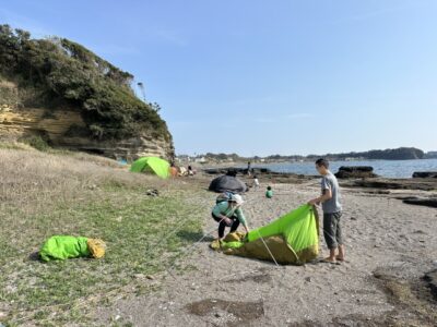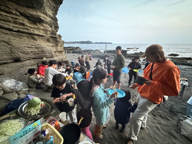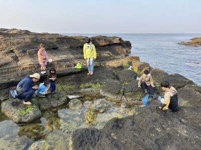 【ファミリー教室】お疲れさまキャンプ!2026-03-30今年度最後のファミリー教室は「番外編!三戸浜お疲れさまキャンプ!」1泊2日の海岸キャンプを行いました!総勢30名近くの大所帯でしたが、生き物が沢山見られる磯が目の前に、広々と開放的な海岸でのんびりとキャンプを行うことができました。今年度の活動を振り返り、参加者同士もさらに深まり無事に活動を締めくくることができました。1年間、ありがとうございました!そして、お疲れ様でした! また4月!